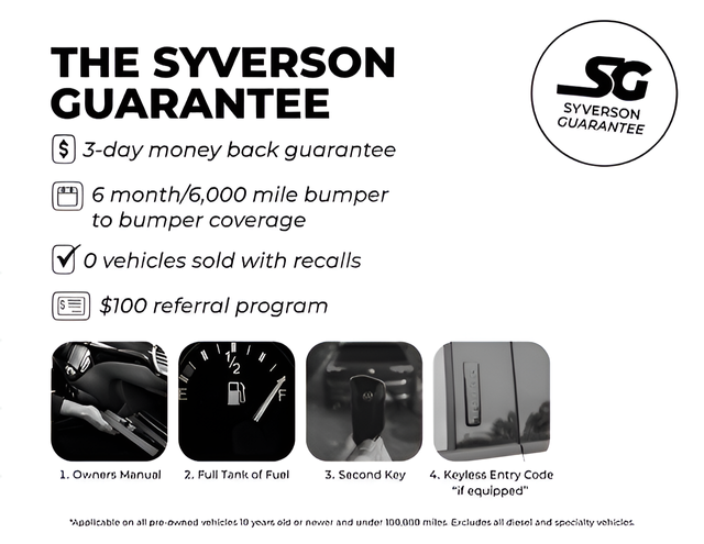 OUR PROMISE: Value Price Upfront...Plain & Simple, Non-Commissioned Sales Staff, Actual Cash Value for Trades, **ASK us about our Syverson Guarantee**2 Keys With Every Purchase**Full Tank of Fuel**Guaranteed No Recalls**